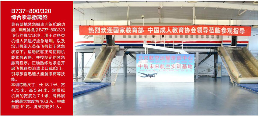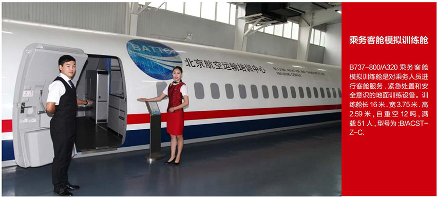 實訓基地全套乘務人員訓練設備,是根據中國民航總局《公共航空交通運輸承運人運行合格審定規(guī)則(CCAR-121FS)》中的相應規(guī)定和要求進行設計、制造。是國內第一家將航空高等職業(yè)教育與民航崗位技能培訓相結合的專業(yè)教育培訓機構,是中國交通運輸協會指定的高等教育自學考試航空系列專業(yè)的開發(fā)、助學、培訓及實習實訓的專業(yè)管理機構,國際航空運輸協會(IATA)在華的授權培訓機構,中國民航科普教育基地、中國交通運輸協會民航服務與管理專業(yè)技能實訓基地、首都機場安檢培訓考證基地、中國成人教育協會航空服務教育培訓專業(yè)委員會人才培養(yǎng)基地。
